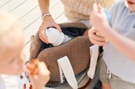 Con sus ganchos para el cochecito y su correa para el hombro, el Mommy Club está diseñado para que viajar con el bebé sea muy sencillo.
