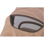 La cesta de transporte Flexi cuenta con un dosel extensible con protección UV50+ y tratamientos WR, inserciones de malla para la circulación del aire y un visera solar para la privacidad.