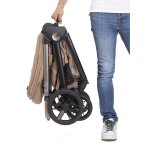 Gracias a la tecnología OneTouch, el cochecito Bellagio se cierra con un solo toque: ¡un solo clic en el respaldo del asiento y el cochecito se cierra solo! Una vez cerrado, se mantiene de pie y está equipado con una práctica asa de transporte.