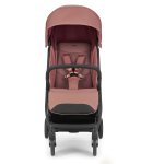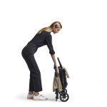El cochecito se pliega fácilmente con una sola mano, incluso con la barra frontal instalada, y permanece en posición vertical una vez cerrado. Para garantizar la máxima higiene, el manillar y la capota siempre se mantienen elevados del suelo.