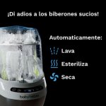 Lava, esteriliza y seca automáticamente biberones y piezas del extractor. ¡Nunca más laves biberones a mano!