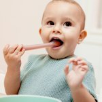 La cuchara de silicona Suavinex para bebés +4 meses.