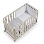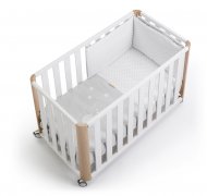 Dispone de un lateral móvil que se extrae sin necesidad de ninguna herramienta lo que permite la práctica del colecho y su utilización como cuna de manera indistinta.
