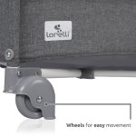 Cuna de viaje con barrera abatible que permite hacer colecho.