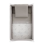 La minicuna con estructura en forma de aspa de Cambrass está fabricada en madera de haya. Permite el descanso del bebé en cualquier estancia de la casa durante los primeros meses de vida gracias a la movilidad que le aportan las ruedas (con freno).Otros aspectos que hacen especialmente funcional esta minicuna, incluye almohada, colchón y somier de madera de 5mm, soporte de madera y su vestidura cosida que incluye la colcha con relleno. Por recomendación de la normativa Europea (EN 1130 UNE-EN 11890:2018) y del real decreto 1801/2003 sobre la seguridad general de los productos, la minicuna no puede ser plegable. Según normativa, debe dejarse de usar la minicuna tan pronto como el niño pueda sentarse por sí solo, levantarse o empujarse con sus manos y rodillas.