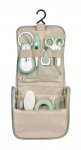 - Nueve accesorios indispensables para el aseo y cuidados del bebé: termómetro de baño, termómetro digital, tijeras, corta-uñas, cepillo para el pelo, mordedor, aliviador encías, aspirador nasal manual, lima de uñas.