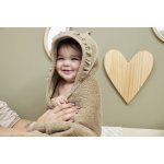 La toalla de baño no sólo es funcional y elegante, sino también de gran calidad. El suave rizo de algodón garantiza que tu pequeño se seque rápidamente y se mantenga calentito después del baño. Además, la capa de baño es fácil de lavar y dura muchos lavados.