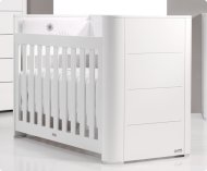 Cuna convertible en cama que se adapta al desarrollo del bebe. Dispone de un lateral móvil de cómodo manejo con una sola mano, con sistema de tornillería oculto y dispositivo de doble seguridad.