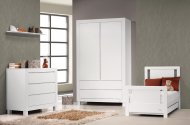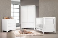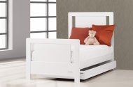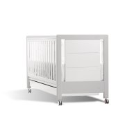 Cuna convertible en cama que se adapta al desarrollo del bebe. Dispone de un lateral móvil de cómodo manejo con una sola mano, con sistema de tornillería oculto y dispositivo de doble seguridad.