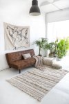 La alfombra de algodón lavable rectangular en color Natural con un diseño bohemio en el mismo color.