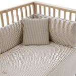 La colcha, es la prenda que viste la cuna y cumple el cometido de protección contra el frío como si de una manta o una funda nórdica se tratara. Su cualidad de tener un relleno desenfundable la convierte en una prenda versátil para ser utilizada en invierno y en verano y también ofrece la ventaja de ser lavada con facilidad. Dispone de tres volantes para remeter la colcha y quede la cuna bién vestida. El protector, fabricado con tejido cuyo interior está acolchado con fibra hueca para amortiguar los posibles golpes del bebé contra la cuna, los cuales se producen por los simples movimientos del bebé cuando está dentro de la cuna. Unas sábanas que envolverán al bebé ara aportarle la maxima suavidad y un par de cojines decorativos que le darán el toque a la colección.