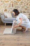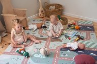 Pensada como un espacio evolutivo, crece junto al niño y se integra perfectamente en la vida familiar. Con su tamaño generoso (200 x 150 cm) y sus dos caras con diseños modernos, la alfombra encaja tanto en la habitación del niño como en el salón. Su robustez, impermeabilidad y facilidad de mantenimiento la convierten en un indispensable del día a día: rincón de lectura, juegos en familia, yoga suave o una siesta improvisada... se adapta a todos los deseos.