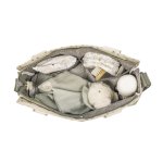 Tiene multiples bolsillos para poder tener todo ordenado y a mano. La bolsa tiene un sistema universal de fijación, con 2 asas cortas ajustables que facilita la colocación en cualquier modelo de silla de paseo. También incorpora una asa larga para poder colgarla en el hombro y asas cortas de mano.