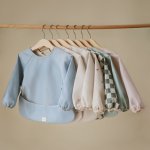 El Babero con mangas de Mushie, és perfecto para el pequeño que está aprendiendo a comer solo, lo haga solo y de forma segura.