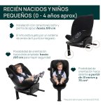 Homologado según ECE R129/03 (i-Size) para niños desde 40 cm hasta 150 cm que cubre todo el rango de uso desde el nacimiento hasta aproximadamente los 12 años.